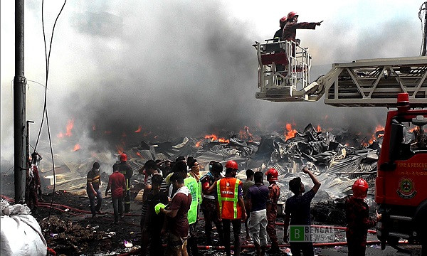 ৪ এপ্রিল মঙ্গলবার সকাল ৬টা ১০ মিনিটে দেশের অন্যতম বড় এই কাপড়ের মার্কেটে ভয়াবহ এই আগুন লাগার ঘটনা ঘটে। ছবি:...